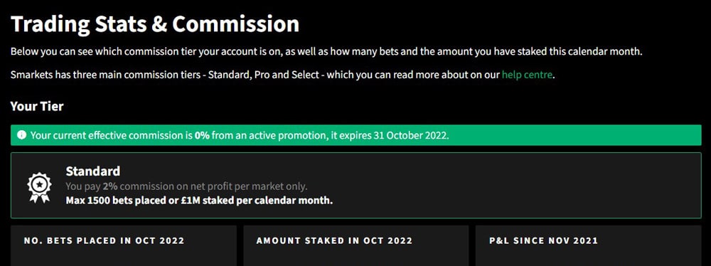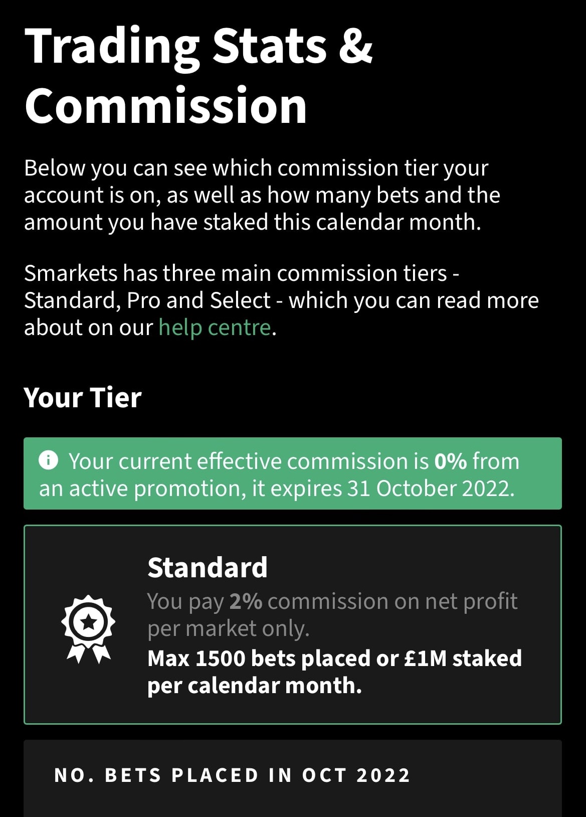 Remember, you can check your active commission rate via the ‘Trading Stats & Commission’ section of your Smarkets account. You can contact Smarkets’ live chat support if you still need clarification.