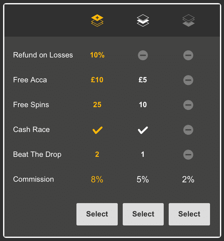Betfair have provided the following table to help you compare the different packages at a glance…