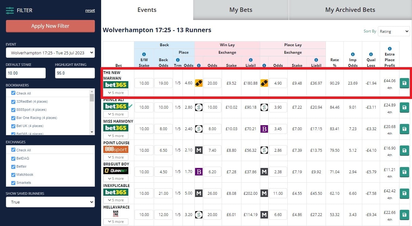 As you’re looking for a horse that will finish in the extra place, only some horses are a good fit. As you can imagine, a favourite is more likely to finish in the top positions, and an outsider is more likely to end up at the back of the pack. Most importantly, you’re looking for horses that combine a small qualifying loss with a big potential return. That may mean there are no suitable horses in some races.